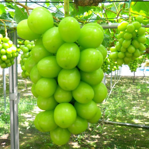 まだ新しい品種の白ブドウです。マスカットの香りと高い糖度、そして何よりも皮ごと食べられるという特徴があります、とても人気があり小さなお子さんが食べるのにも安心